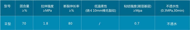 2. 涂膜強度高,延伸率大,對基層收縮和變形開裂適應性強。